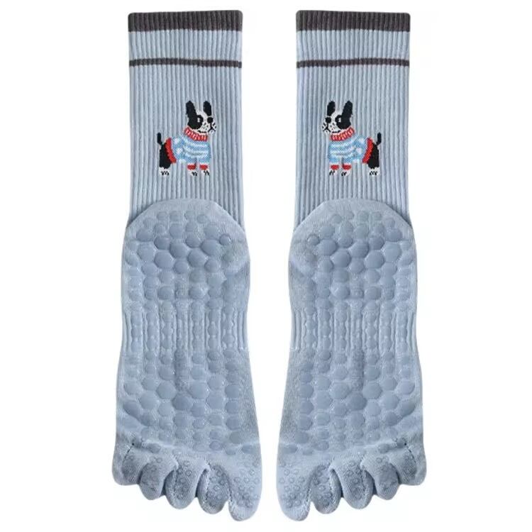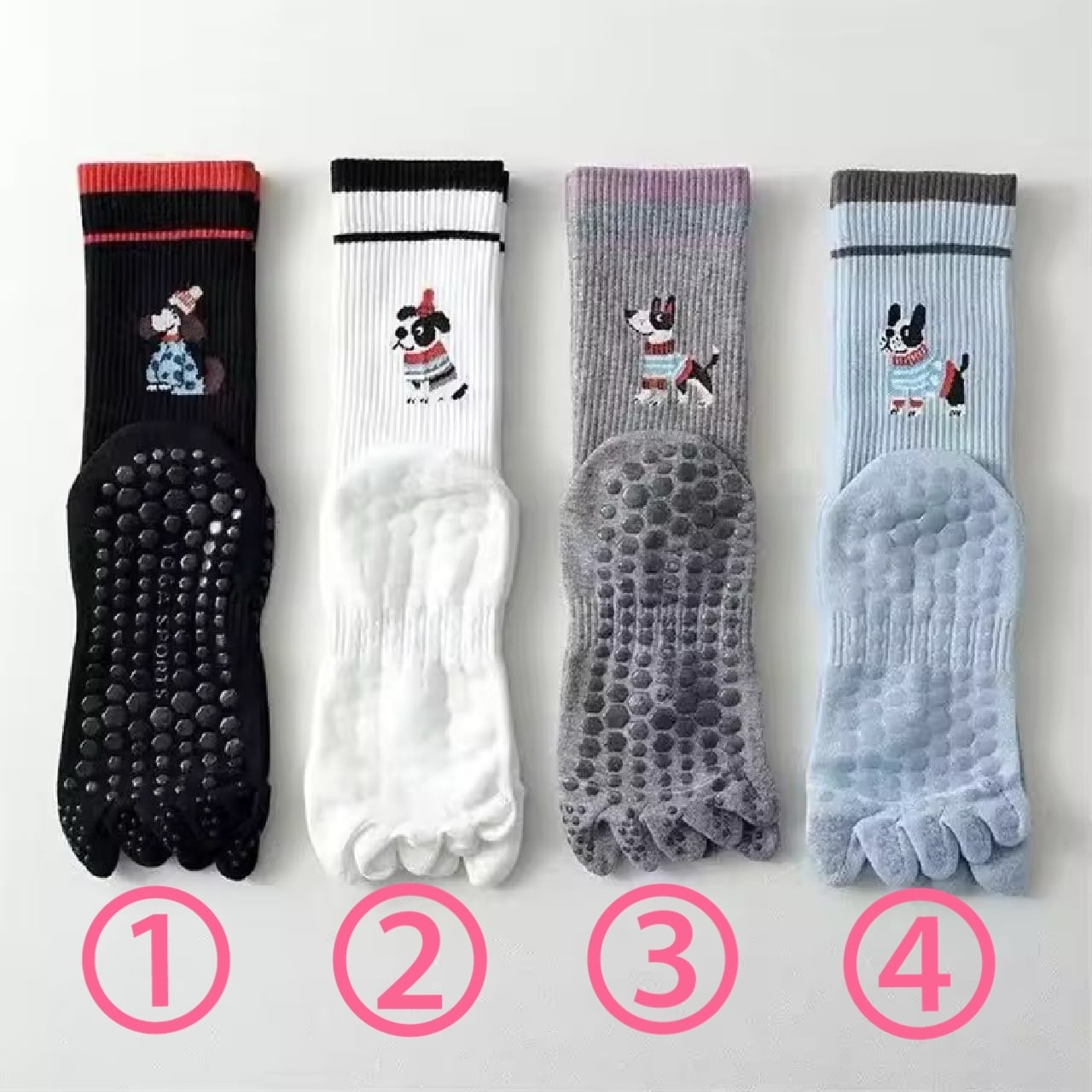 可愛い犬のイラストが描かれた、クッション性抜群のピラティス五本指ソックスです!